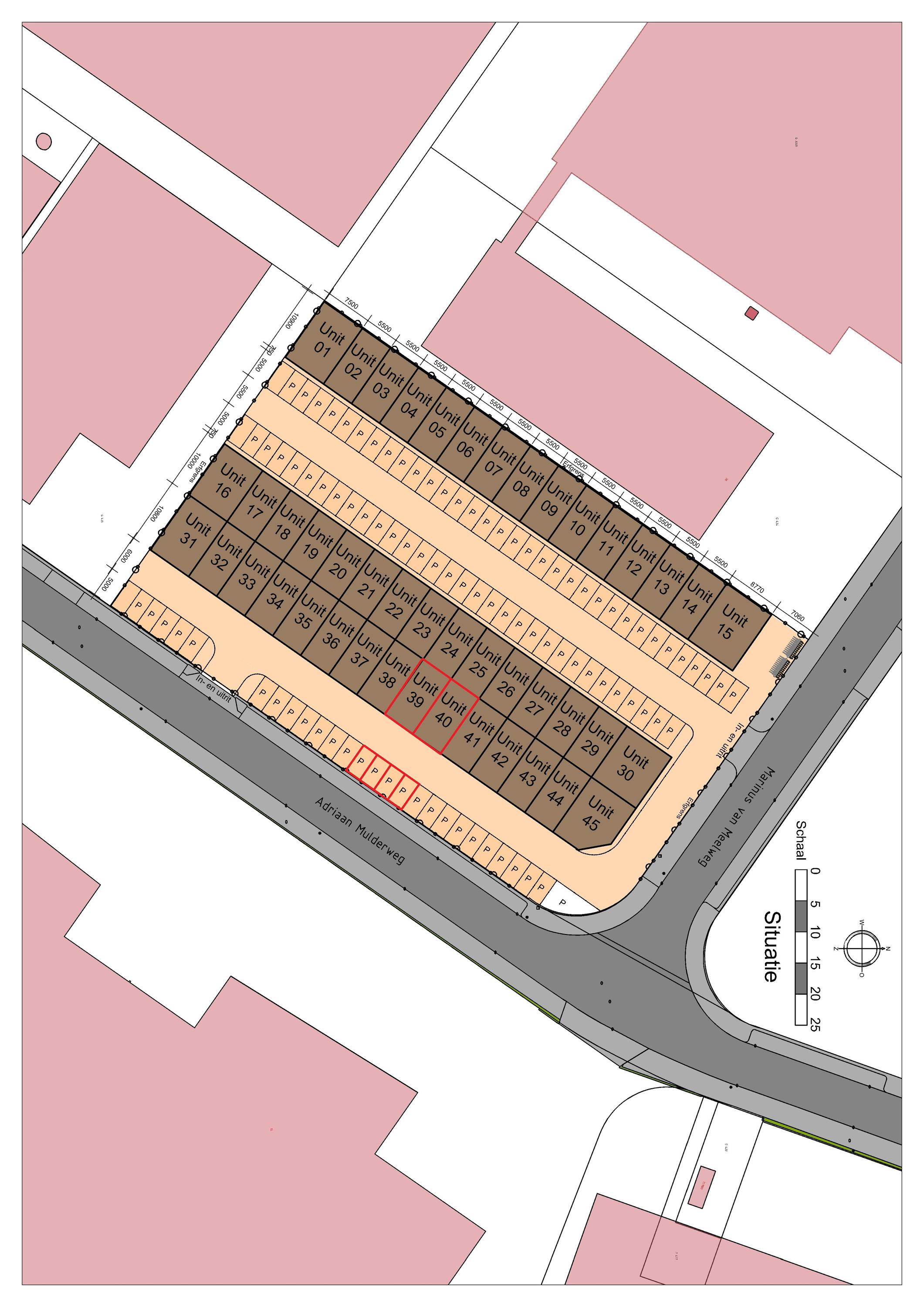 Unit 40: beschikt over 2 parkeerplaatsen, gelegen aan de voorzijde van de unit