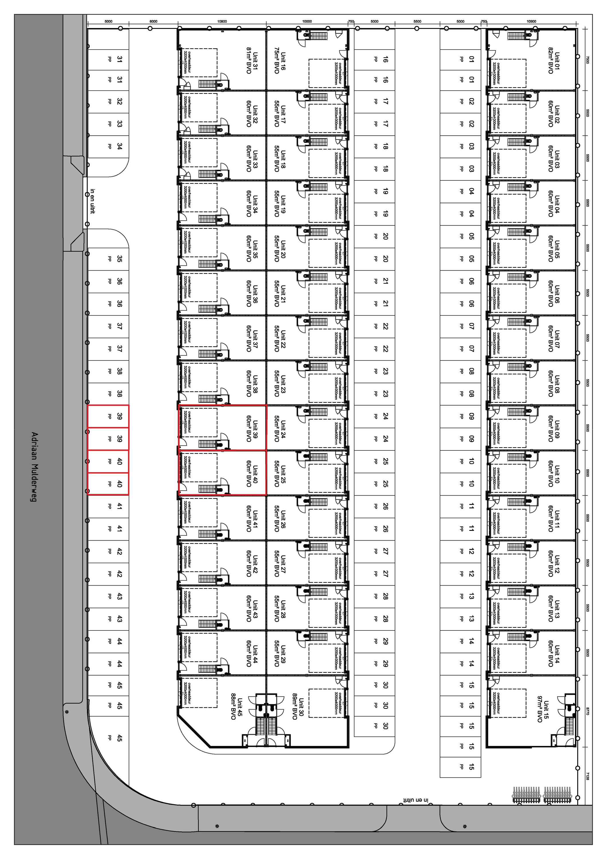 Unit 39: beschikt over 2 parkeerplaatsen, gelegen aan de voorzijde van de unit