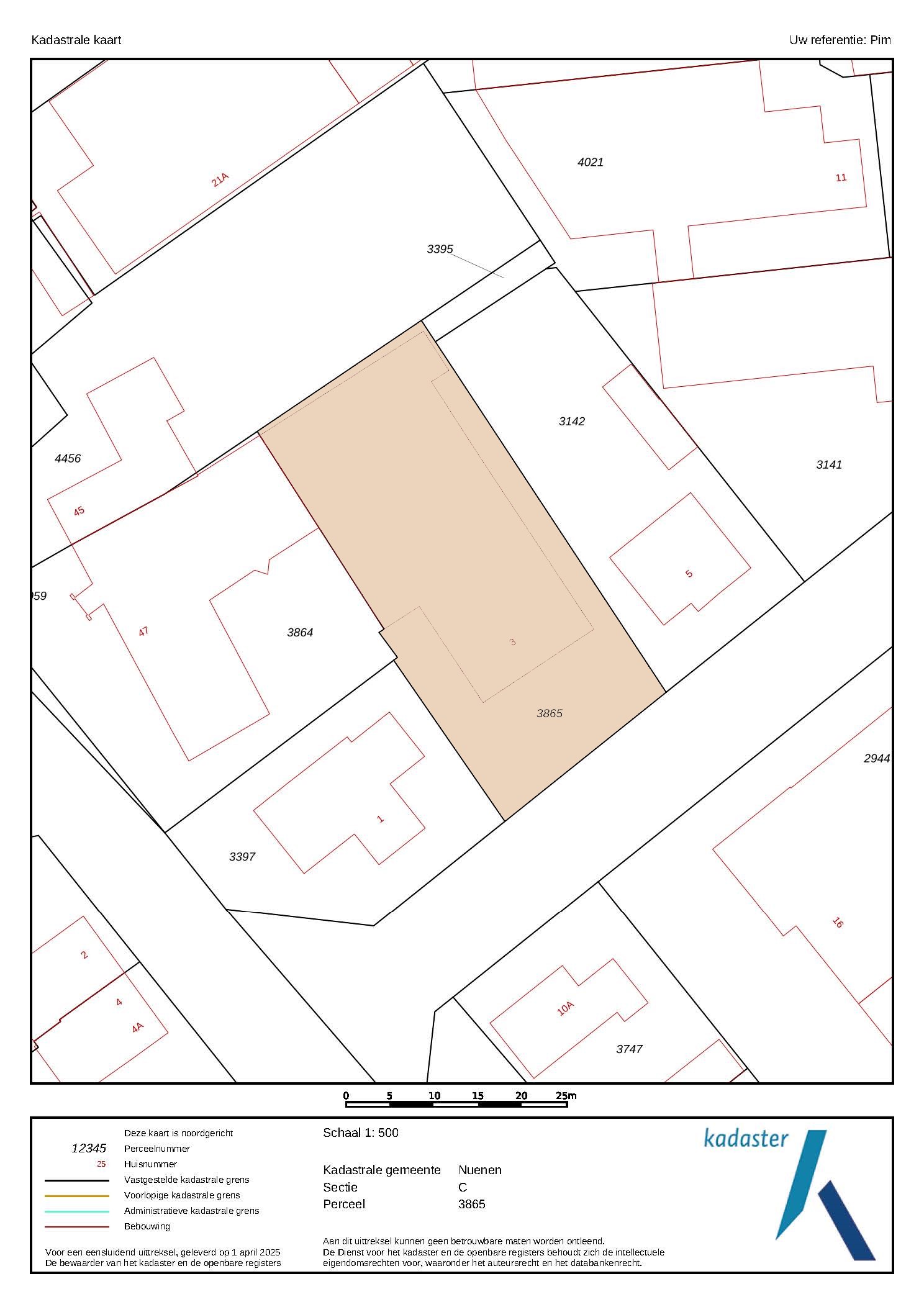 Kadastrale gegevens Den Binnen 3 te Nuenen