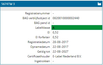 Het kantoorgedeelte beschikt over het zeer gunstige energielabel A welke geldig is tot 22-08-2027.