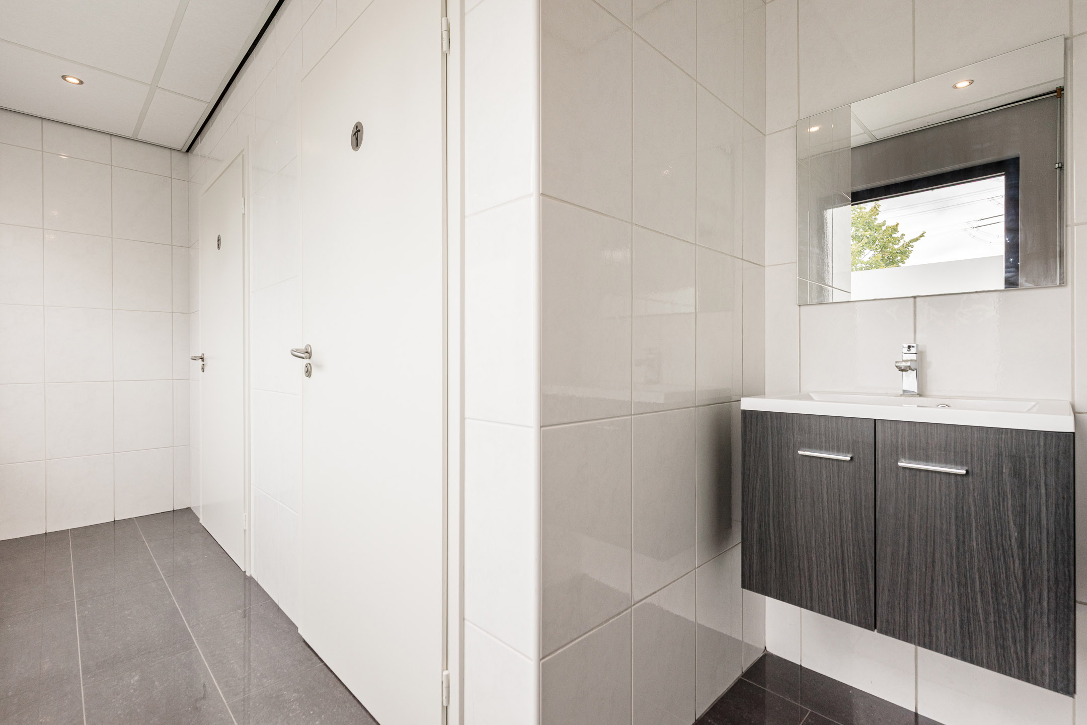 • gescheiden dames- en heren toiletgroep met voorportaal voorzien van fonteintje