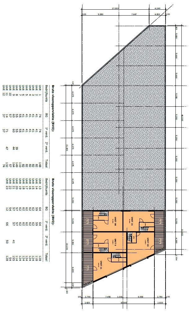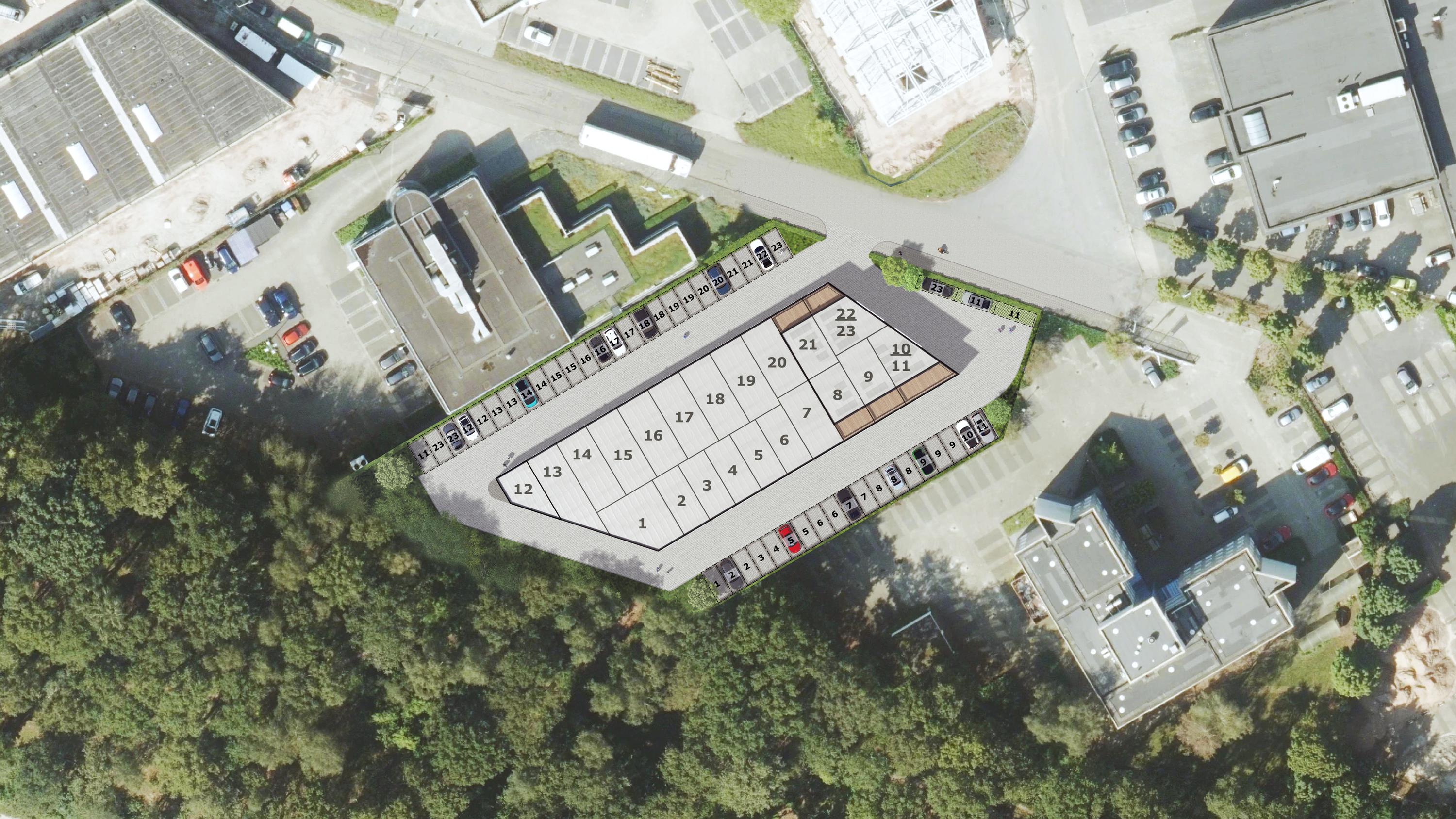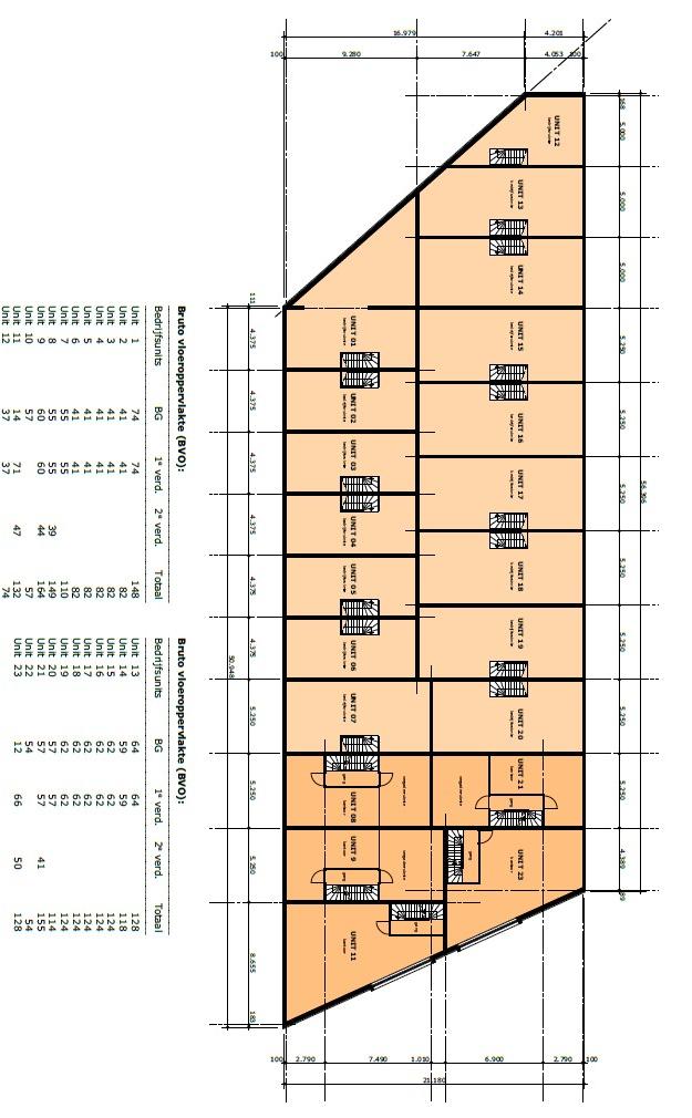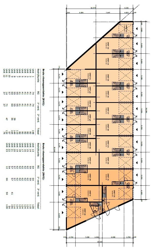 23 bedrijfsunits - van circa 54 m² tot circa 189 m² - onderverdeeld in