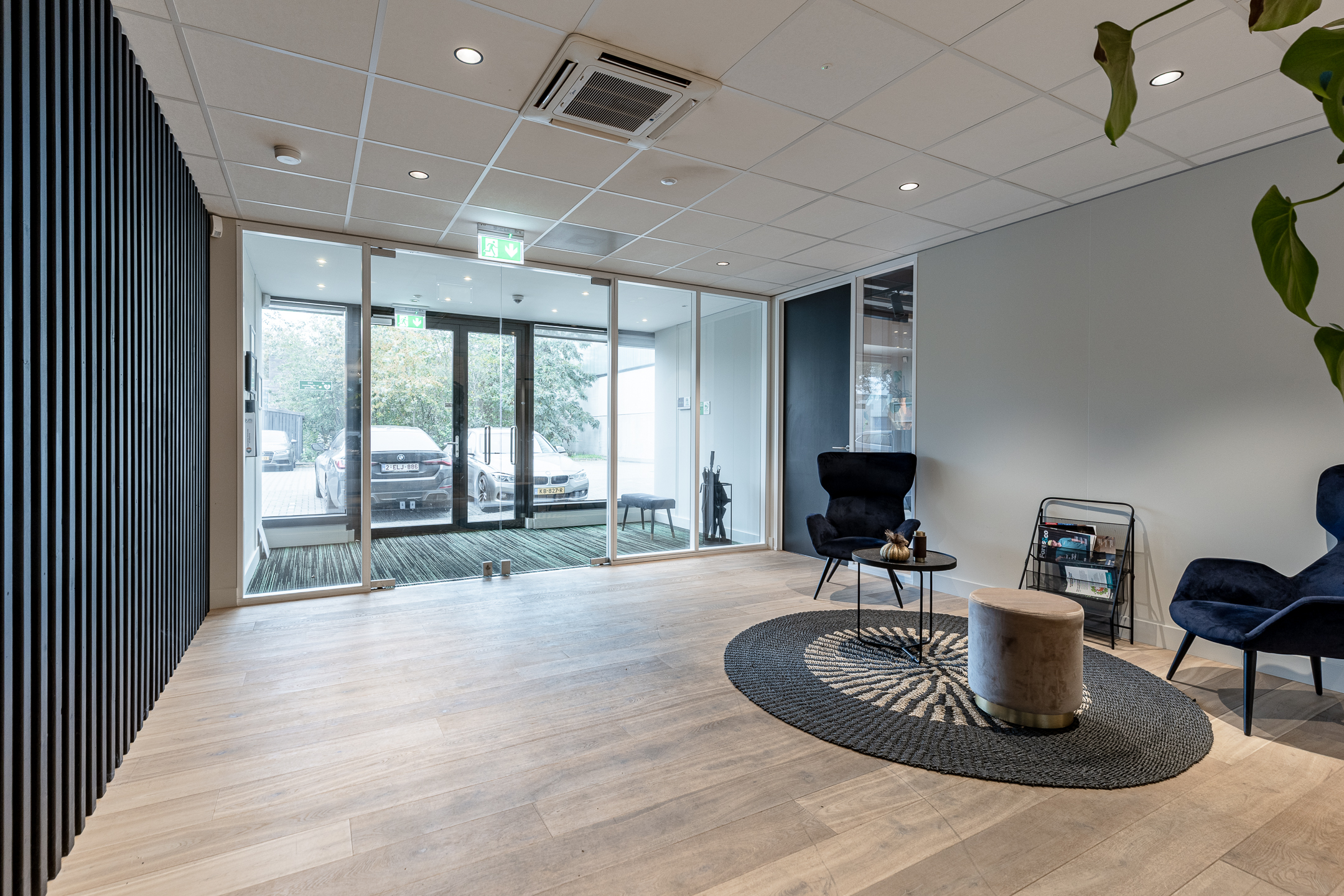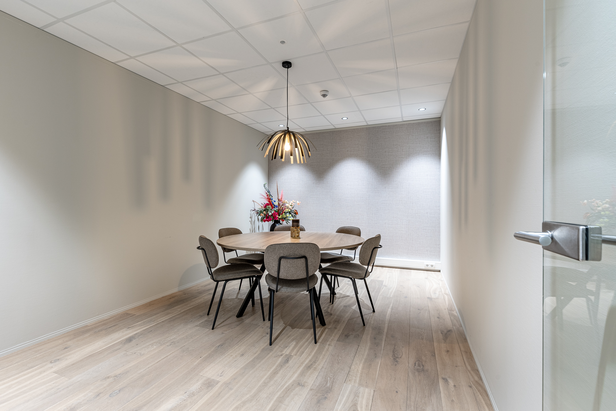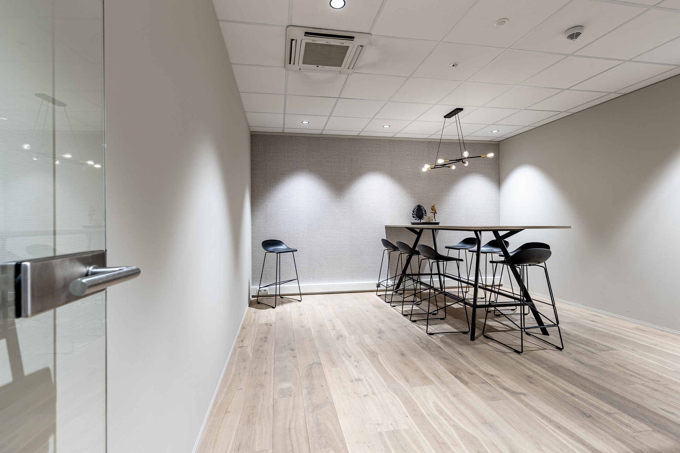 • huidige indeling door middels van glaspanelen en systeemwanden
