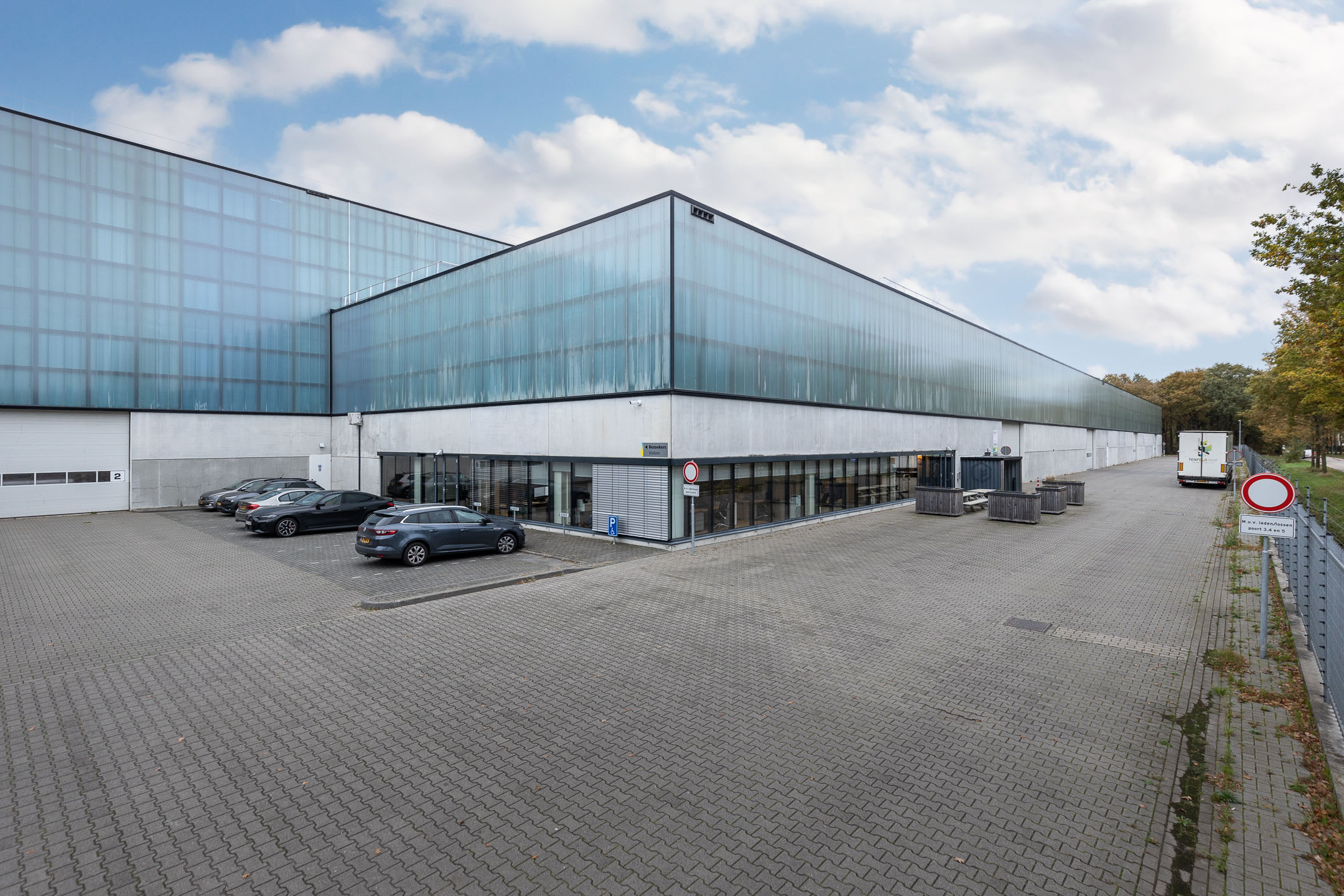 80 parkeerplaatsen beschikbaar, gelegen op eigen afgesloten buitenterrein, aan de voor- en achterzijde van het bedrijfspand aan de Peelterbaan 1 te Weert.