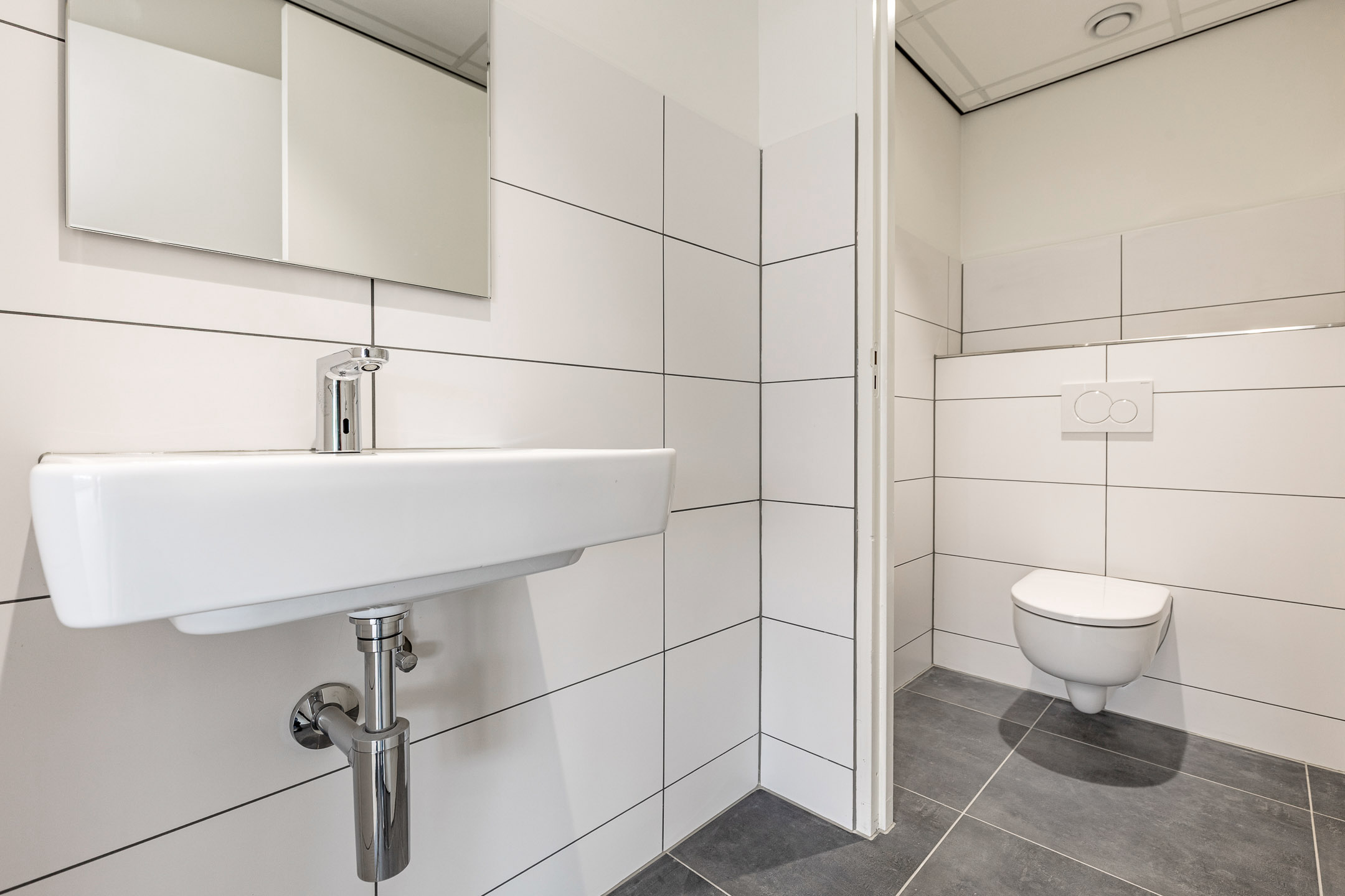 • gescheiden dames- en heren toiletgroep met urinoir met voorportaal voorzien van fonteintje