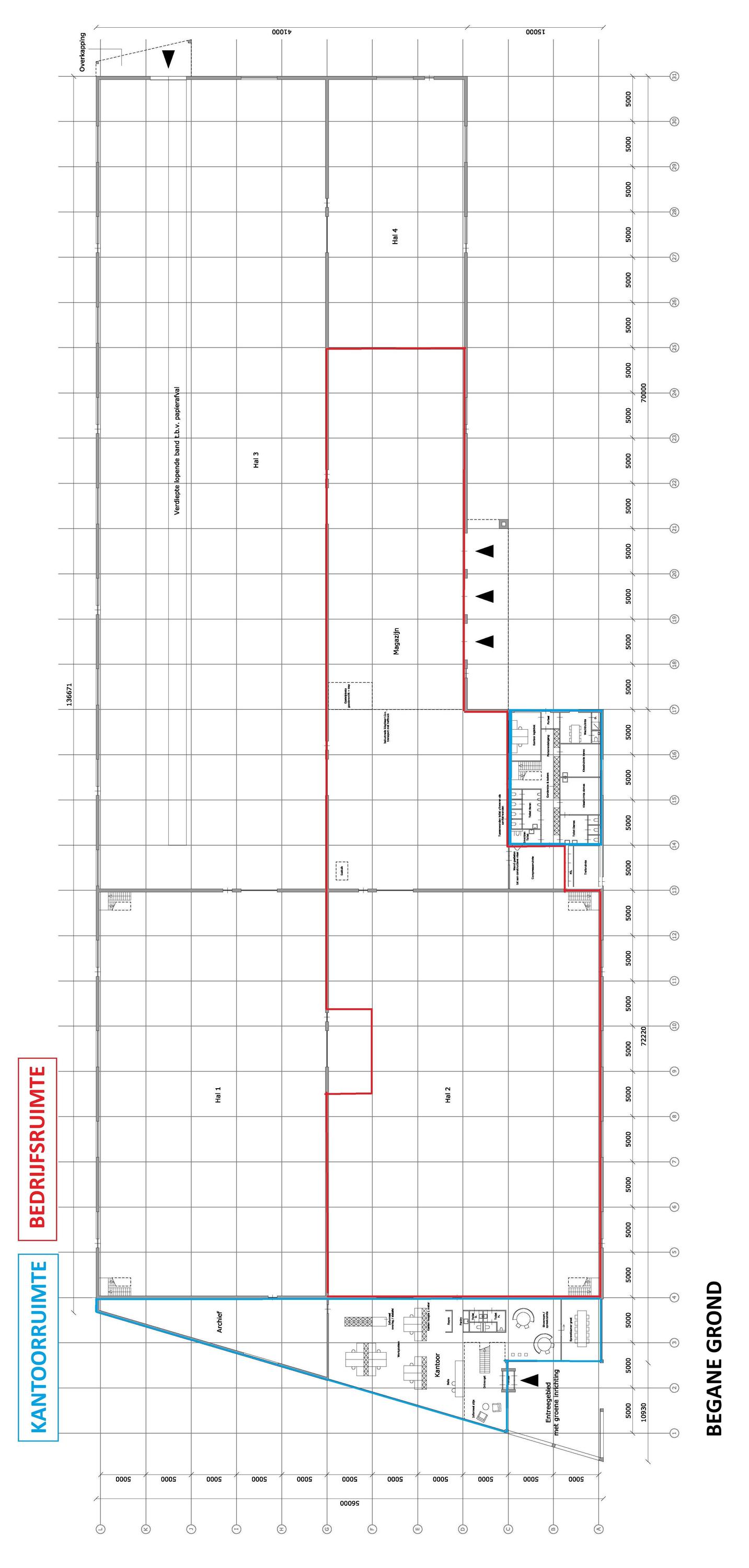 Circa 2.400 m² bedrijfsruimte, op de begane grond